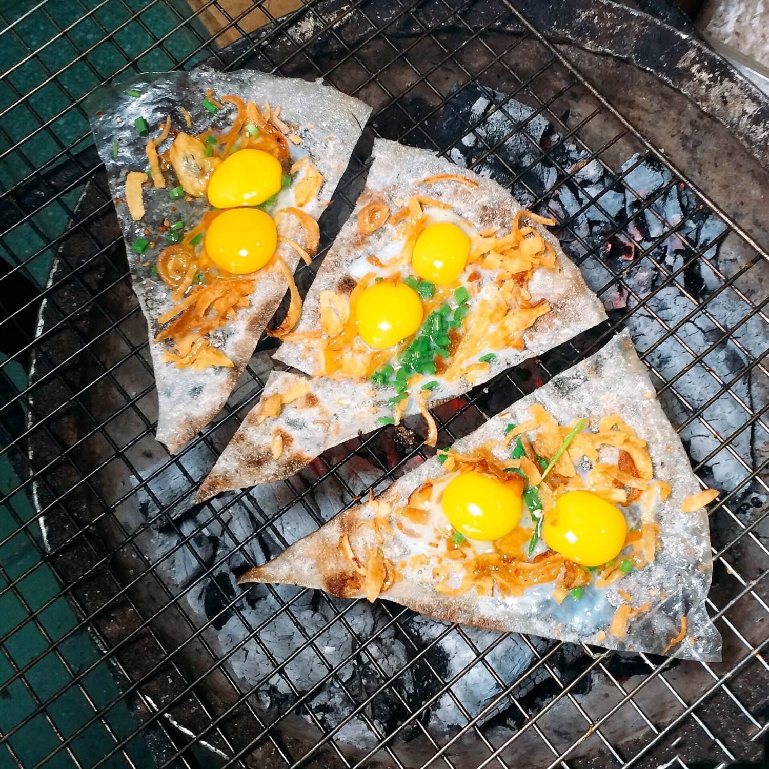 Bánh tráng sau khi được cho các nguyên liệu theo yêu cầu sẽ được đặt lên vỉ nướng giòn. Khi ăn, thực khách sẽ cho nước chấm lên bánh rồi kẹp lại và thưởng thức. Hoặc có khi khách sẽ chấm hẳn bánh vào nước chấm để đậm vị hơn.