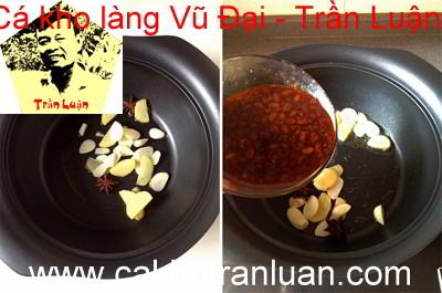 - Phi thơm gừng, tỏi cắt lát và hoa hồi, sau đó đổ phần gia vị đã pha vào.