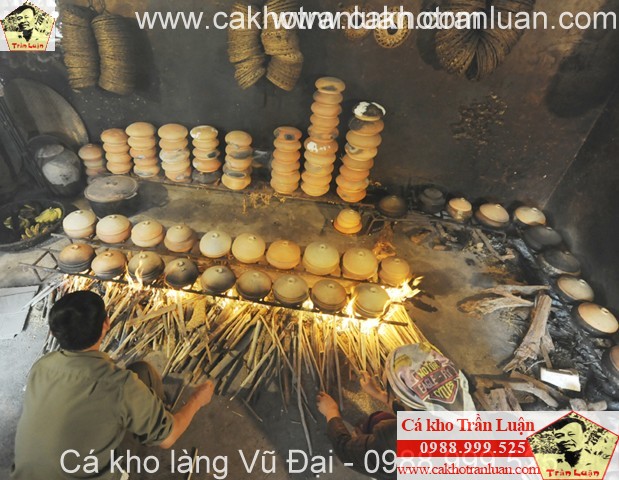 Ông Trần Bá Luận, sinh năm 1955, chủ một “cơ sở” kho cá ở xóm 1, Hòa Hậu, cho biết bố ông tên Trần Bá Nhuận, gia đình nghèo khó nên xưa vào Thanh Hóa nấu ăn thuê cho Pháp. Năm 1954, Pháp thua rút khỏi Việt Nam, ông Nhuận chuyển sang nghề buôn nồi đất từ Thanh Hóa, Nghệ An ra các tỉnh ngoài Bắc. Những năm đi nấu ăn thuê giúp ông Nhuận học được dăm bảy bí quyết nấu ăn, nêm nếm gia vị, nhưng món cá kho của nhà ông chỉ được kho mỗi khi tát ao độ tết và cũng chỉ để ăn trong nhà. Từ năm 1998, khi lần lượt các con ông Luận đi học xa, phải ở trọ, thỉnh thoảng muốn có món quà biếu thầy cô ngày tết, ông kho một nồi cá để con mang đi lễ thầy, có lúc lại mang biếu khách quý của nhà. Cá được kho bằng nồi đất, ủ trong lửa trấu cả chục tiếng đồng hồ nên xương nhừ thấu, vậy mà thành một cái vị lạ lùng, người ăn cứ tấm tắc khen ngon. Rồi cũng chính họ, quen cái vị thơm bùi của món cá lại đặt ông kho giúp nồi cá vào những dịp lễ tết. Chừng vài năm nay, kho cá bán mới thật sự trở thành nghề của gia đình ông, khi người con trai út vào đại học đã làm hẳn một trang web giới thiệu tỉ mỉ về món cá kho của làng Vũ Đại - cái tên mà nhà văn Nam Cao đã đặt cho làng Đại Hoàng nơi ông ở. Nay thì vài nhà trong làng Vũ Đại kho cá bán cho thiên hạ. Những ngày giáp tết, cơ sở kho cá của bà Trần Thị Xuyến (xóm 11) lúc nào cũng có năm bảy người làm. Hôm tôi xuống làng, hàng trăm niêu cá kho đang được um trấu cho cạn nước nên những người làm chuyển sang cạo gừng và riềng. Ngay sát nơi kho cá là bể cá tạm quây bằng tấm bạt, chứa hàng chục con trắm đen nặng nề quẫy nước, có con nặng cả chục cân. Mẻ cá này vừa được kéo lên lúc chiều - bà Xuyến bảo - đợi đến đêm thì sơ chế. Nhà cũng có sẵn ao nuôi cá (khoảng 1.000m2) nên sau khi mua cá về thường thả luôn xuống ao, bắt lên kho dần. Mỗi năm, cơ sở kho cá Hiền Xuyến phải mua gần 3 tấn cá mới đủ kho bán.