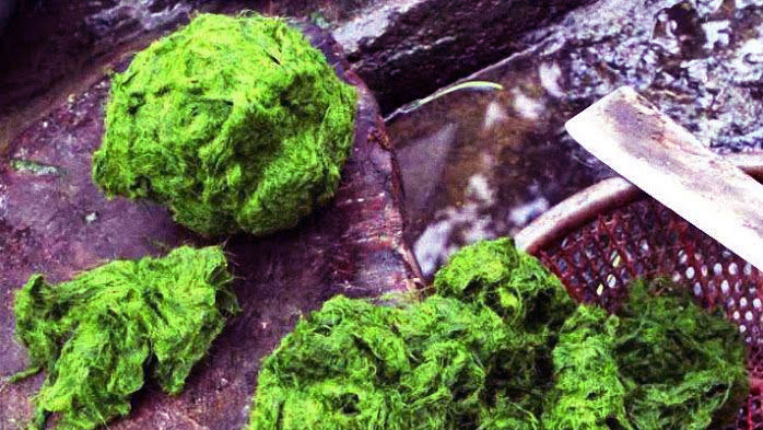 Rêu đá được rửa sạch rồi vắt kiệt nước trước khi chế biến.